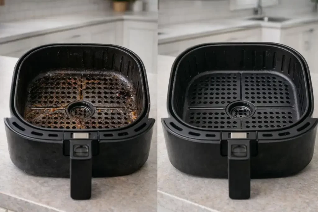 Many air fryer problems don’t come from neglect alone — they come from waiting too long, then scrubbing too hard.