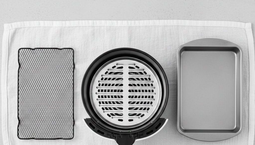 Once reassembled, run the air fryer at a low temperature for 3–5 minutes. This evaporates any remaining internal moisture and prepares the unit for its next use.